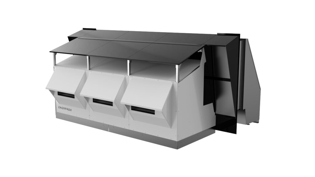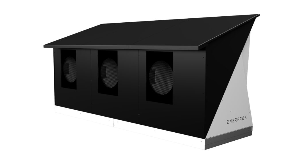 Le Thermo PVT, conçu pour les toits plats, intègre des thermopompes air-eau, des ventilateurs à récupération de chaleur et un système solaire avec batterie.