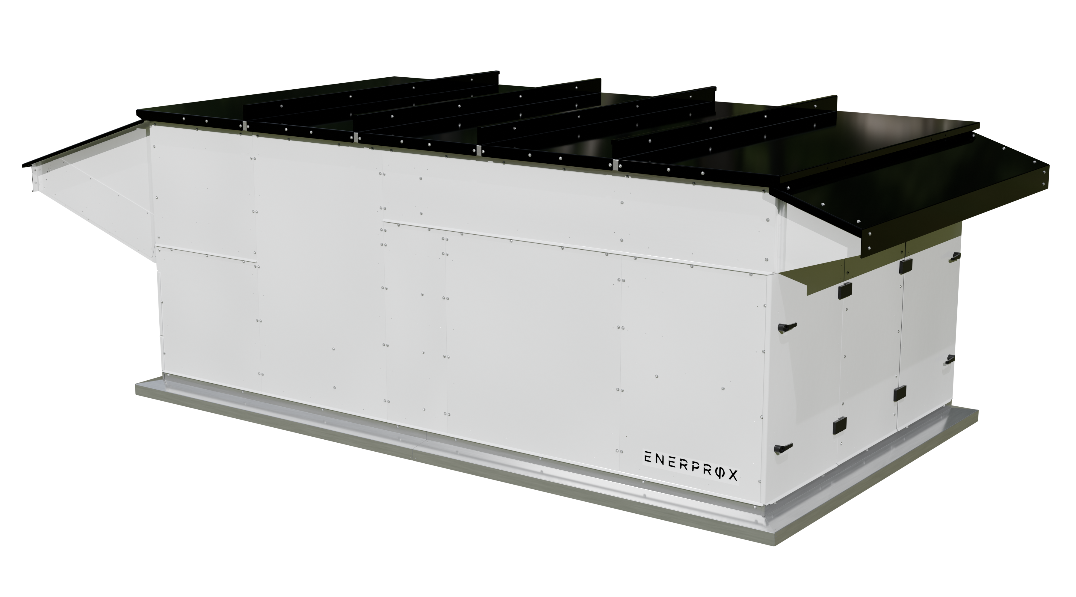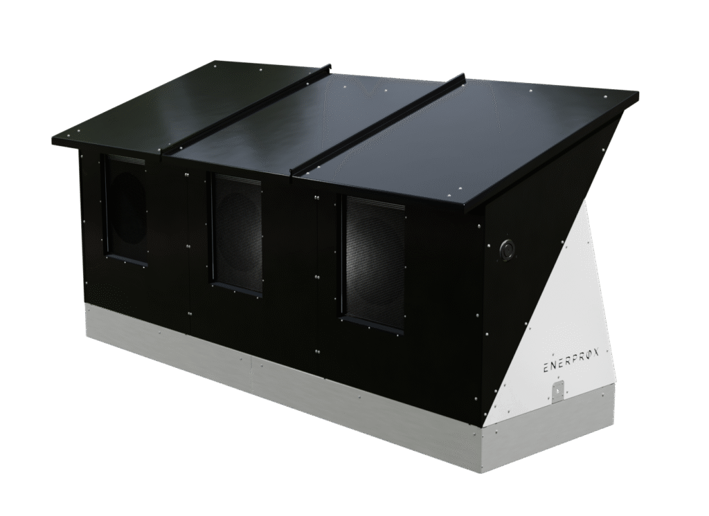 Le Thermo PVT, conçu pour les toits plats, intègre des thermopompes air-eau, des ventilateurs à récupération de chaleur et un système solaire avec batterie.
